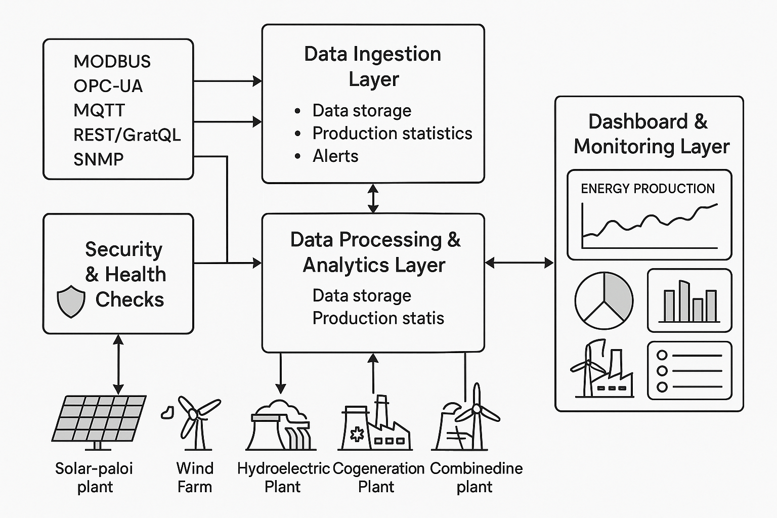 - EnergyOps riceve costantemente i dati dagli impianti (fotovoltaico, eolico, idroelettrico, ecc.)